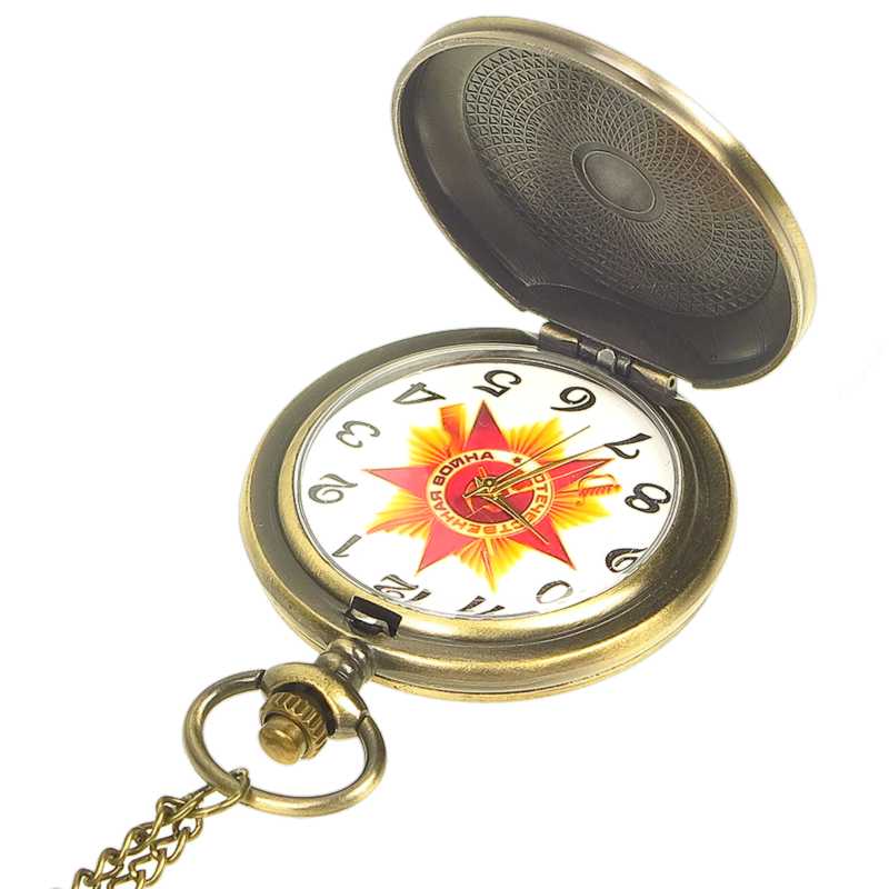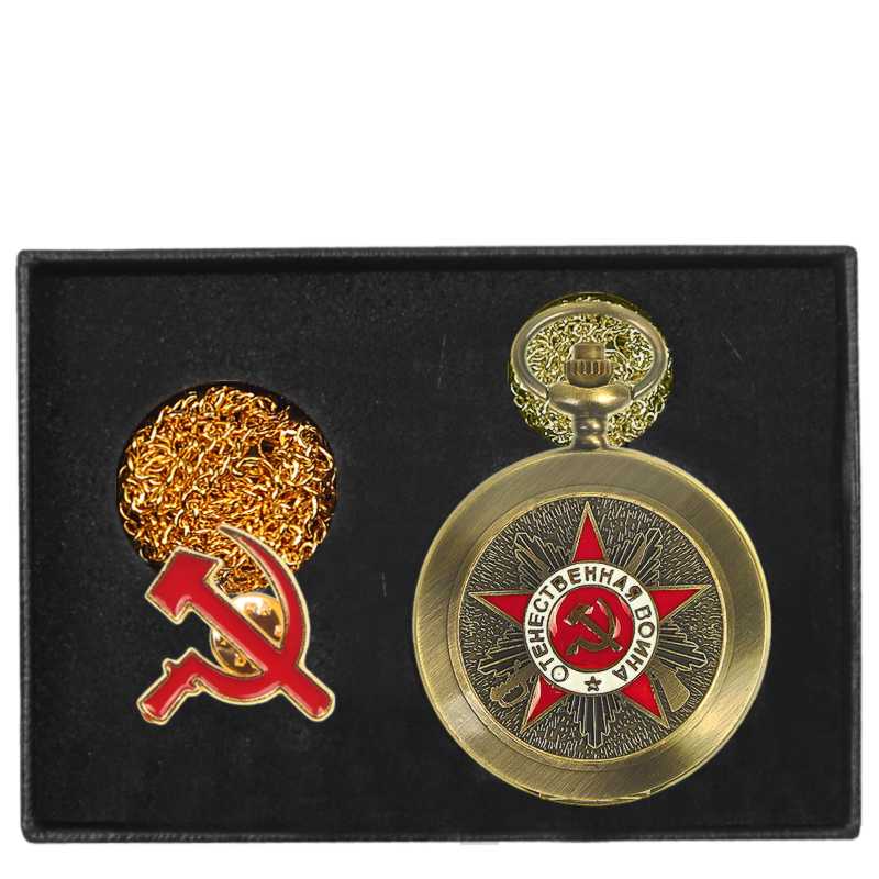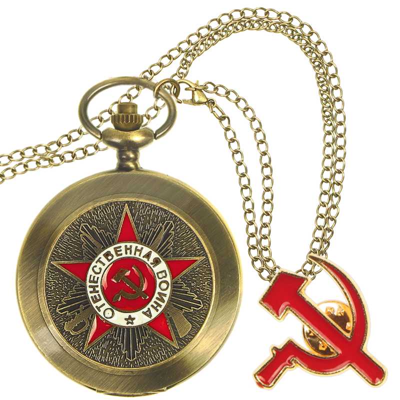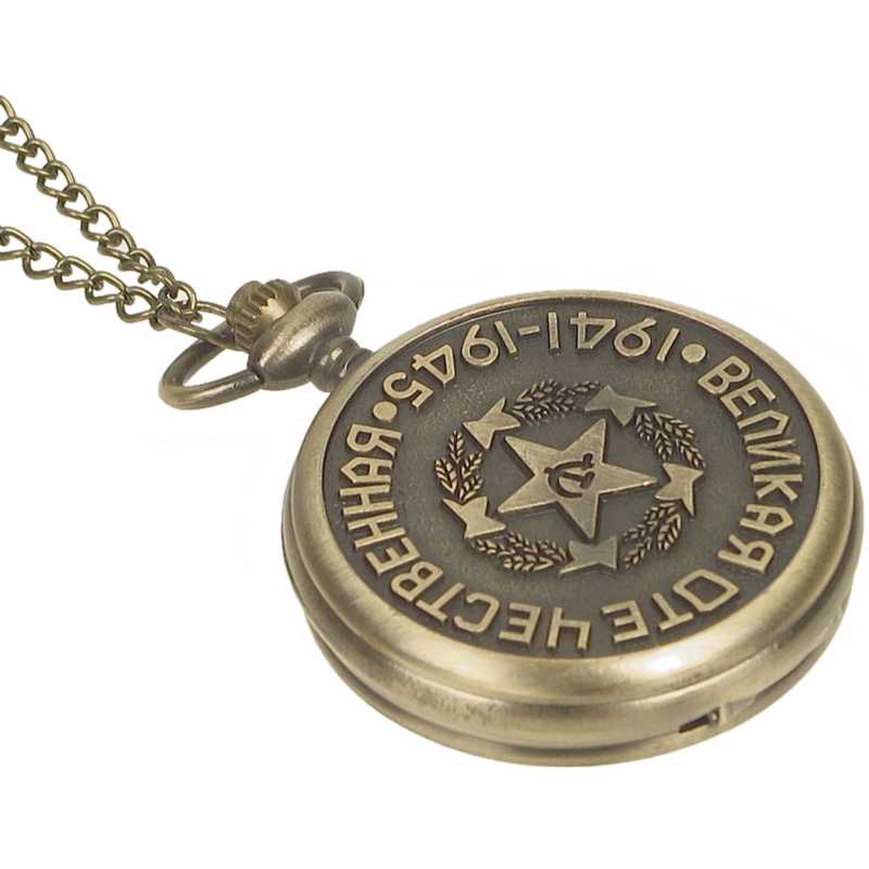 Ceasul de buzunar elegant pe lanț cu designul CCCP va încânta orice iubitor al acestei uniuni legendare. Ceasul funcționează cu ajutorul unei mișcări Quartz, care obișnuiește să fie inclusă în ceasurile de buzunar datorită cronometrării precise, durabilității îndelungate și accesibilității sale. Suprafața ceasului este învelită cu motive frumoase, simboluri și alte elemente ale Uniunii Sovietice. Alama într-o frumoasă culoare de aur vechi a fost folosită pentru a produce acest ceas de bun gust. Lanțul de aceeași culoare cu ceasul are o lungime de aproximativ 80 cm. Cifrele arabe într-un font retro, culoarea aur vechi a ceasului și acele aurii formează împreună un ceas retro autentic pe un lanț parcă desprins din trecut.