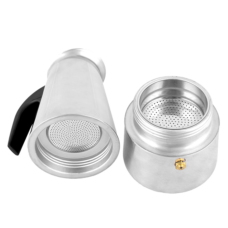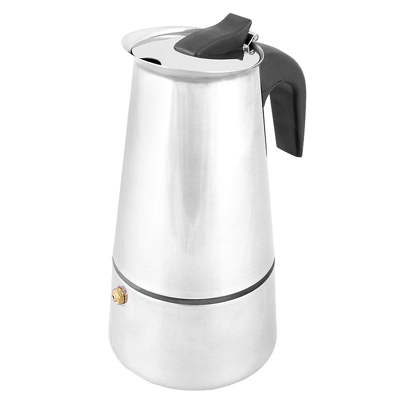 Aparat de cafea practic Moka, de culoare argintie, care se potrivește în orice bucătărie datorită designului său elegant. Cu o capacitate de 300 ml, produce mai multe cești de espresso sau o cafea clasică deodată. Espressorul nu este compatibil cu plitele cu inducție. Însă, este compatibil cu orice aragaz, precum și cu o plită vitroceramică. În plus, acesta poate fi utilizat în timpul campingului.