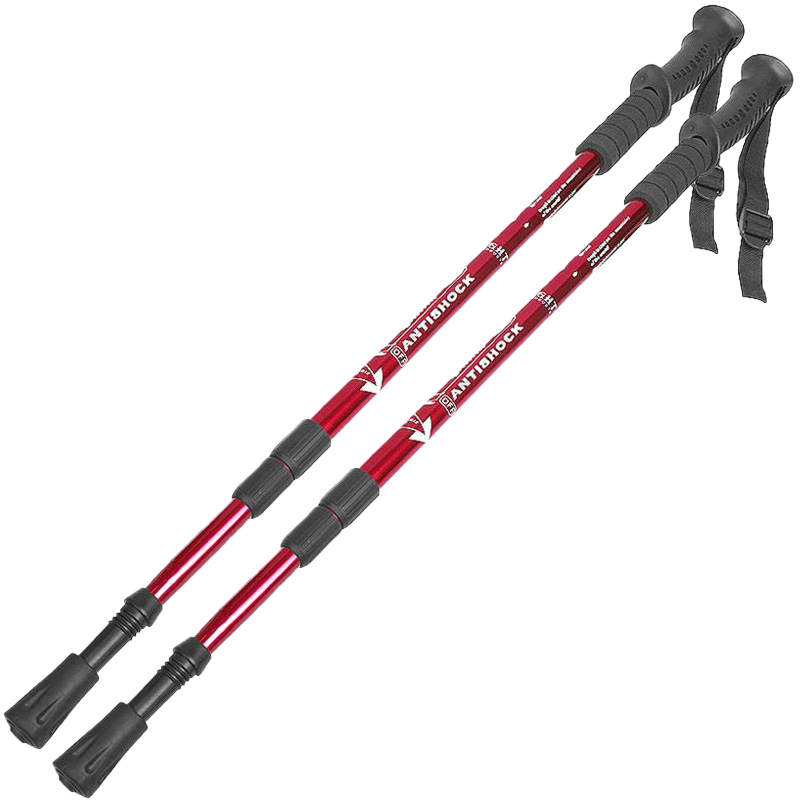 Set bețe trekking AntiShock roșu Set bețe drumeție, telescopic