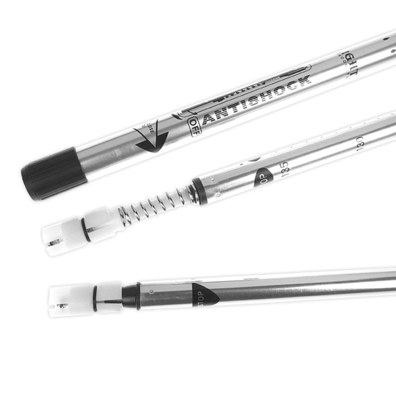 În partea superioară a bastonului se află un metru care vă informează cu privire la lungimea totală reală a bastonului, în cazul în care aveți partea inferioară reglabilă a bastonului setată la lungimea maximă. Capătul cauciucat al bastonului este un bun ajutor pentru orice tip de teren și vă va oferi o stabilitate excelentă și va reduce frecarea bastonului cu terenul din jur. Bucla reglabilă de pe mânerul bastonului servește drept siguranță în cazul în care pierdeți aderența bastonului. Pachetul include două bastoane cu vârfuri din plastic, potrivite pentru zonele cu zăpadă sau nisip.