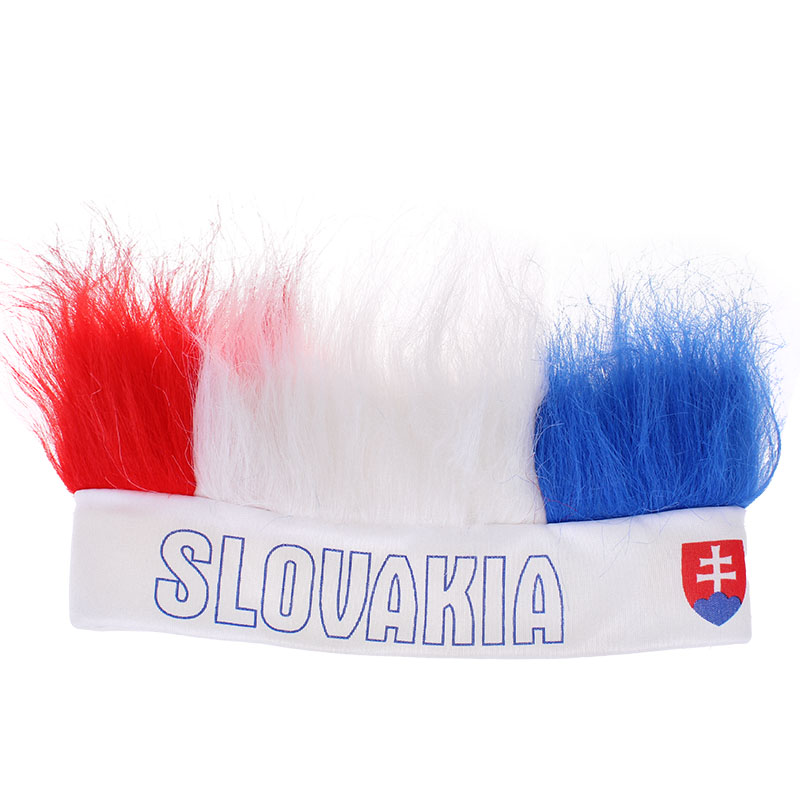 Bentiță cu păr în culorile drapelului Slovaciei. La fabricare a fost utilizat 100% poliester. Bentiță ideală pentru susținere în timpul meciurilor de hochei, fotbal sau al altor evenimente sportive.