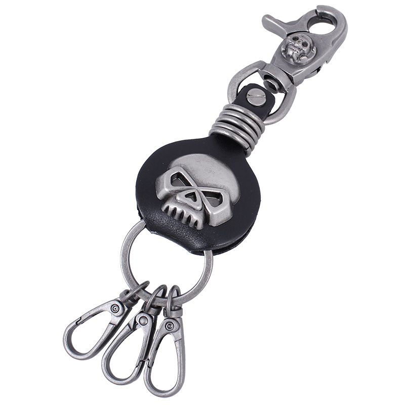 Ești rocker și trăiești pentru plimbările cu motocicleta? Deoarece rockerii și motocicletele merg mână în mână, evidențiază-ți imaginea cu accesorii precum acest breloc robust, realizat cu grijă din metal și piele de calitate. Partea din piele a brelocului este decorată cu un craniu metalic.