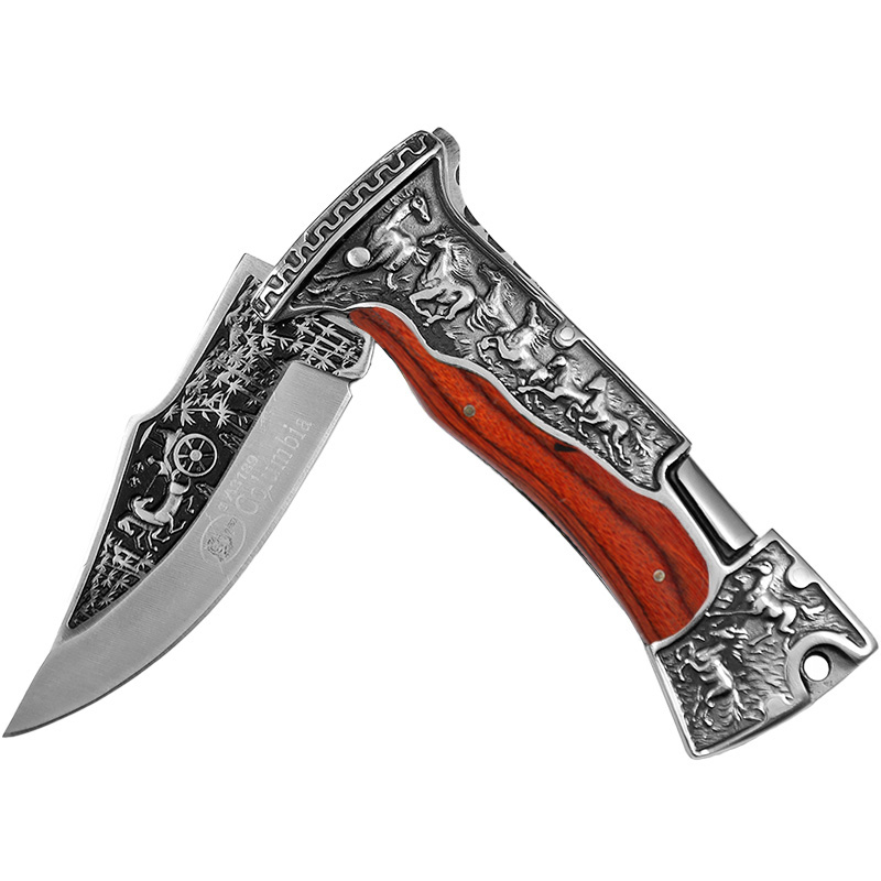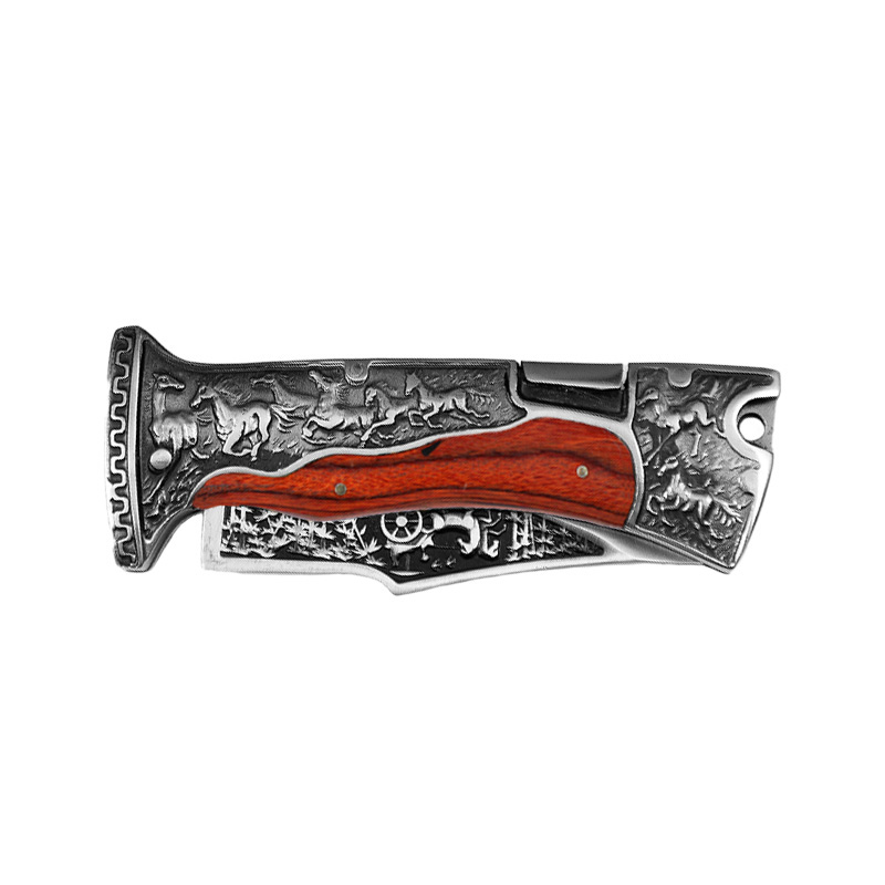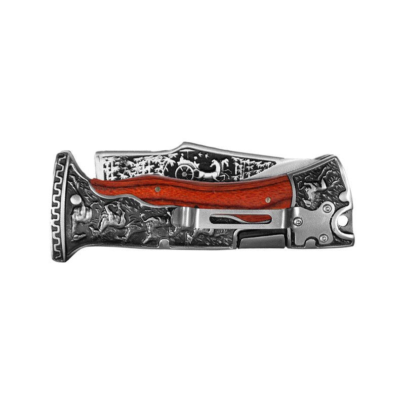 Briceagul de vânătoare Kandar este un cuțit de înaltă calitate, detaliat, care servește ca instrument practic pentru orice vânător sau pădurar. Acest briceag are o lamă din oțel inoxidabil 440, care se caracterizează printr-o rezistență ridicată la uzură. Mânerul din metal masiv și cu strat de lemn se potrivește perfect în mână și, datorită protecției sale ergonomice, vă permite să creați mai multă presiune asupra lamei, astfel încât acest briceag poate face față chiar și celor mai dificile sarcini. De asemenea, briceagul oferă detalii precum o clemă metalică pentru prindere la curea sau o blocare inteligentă a lamei pe mâner, care se integrează perfect cu designul general al briceagului. Așadar, dacă sunteți în căutarea cadoului potrivit pentru un vânător acest briceag este alegerea potrivită.