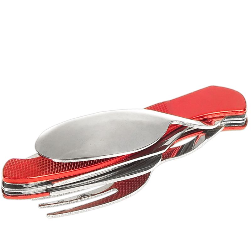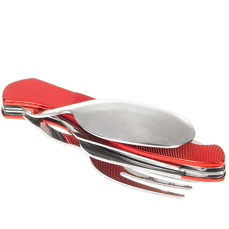 Introducere » Cuțite de bucătărie, vânătoare » Cuţite de buzunar » Briceag pentru drumeție, cu tacâmuri, roșu