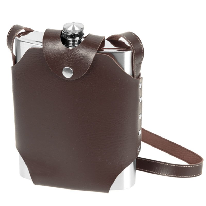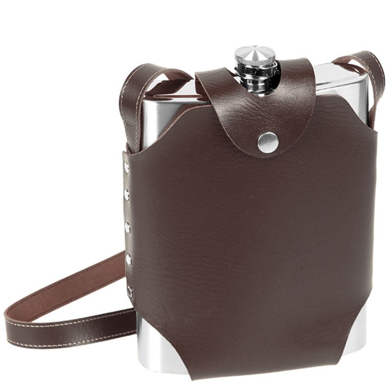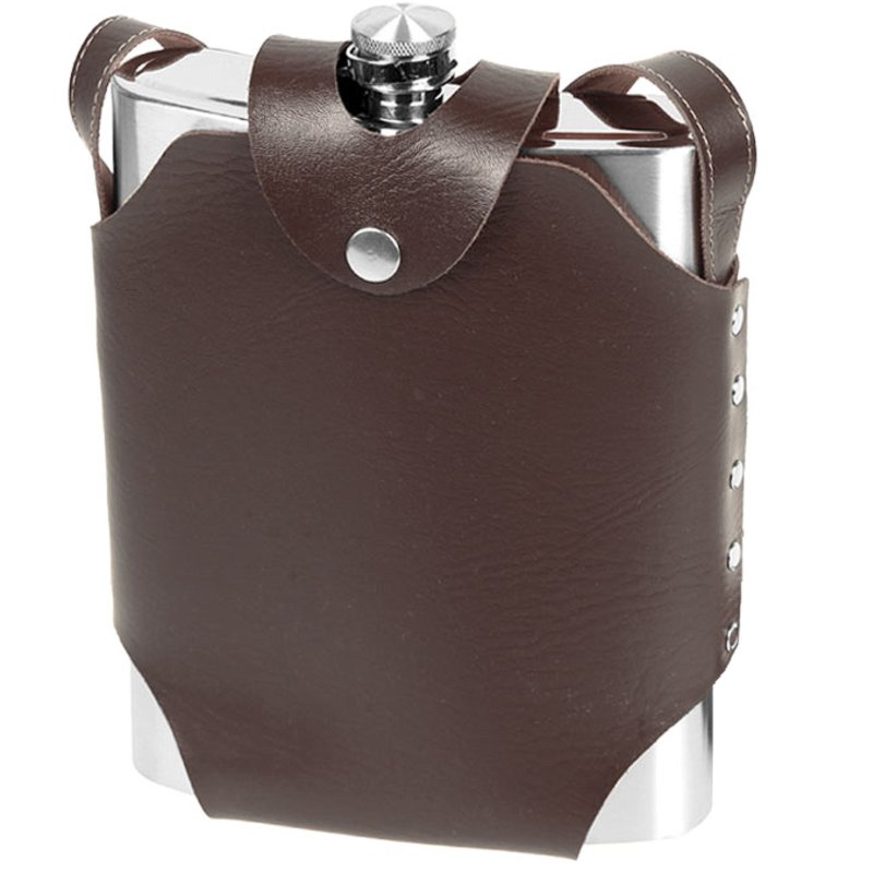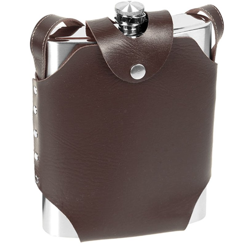 Descriere: Butelca mare pentru acool, din oțel inoxidabil, xxl, cu un volum de aproximativ 1,9 litri este depozitată într-un toc maro. Husa din piele ecologică are o curea cu o lungime de 104 cm, perfectă pentru a purta butelca pe umăr. Oțelul inoxidabil este un material potrivit pentru fabricarea sticlelor. Husă din piele ecologică este decorată pe laterale cu nituri din oțel inoxidabil, care servesc doar ca element decorativ.