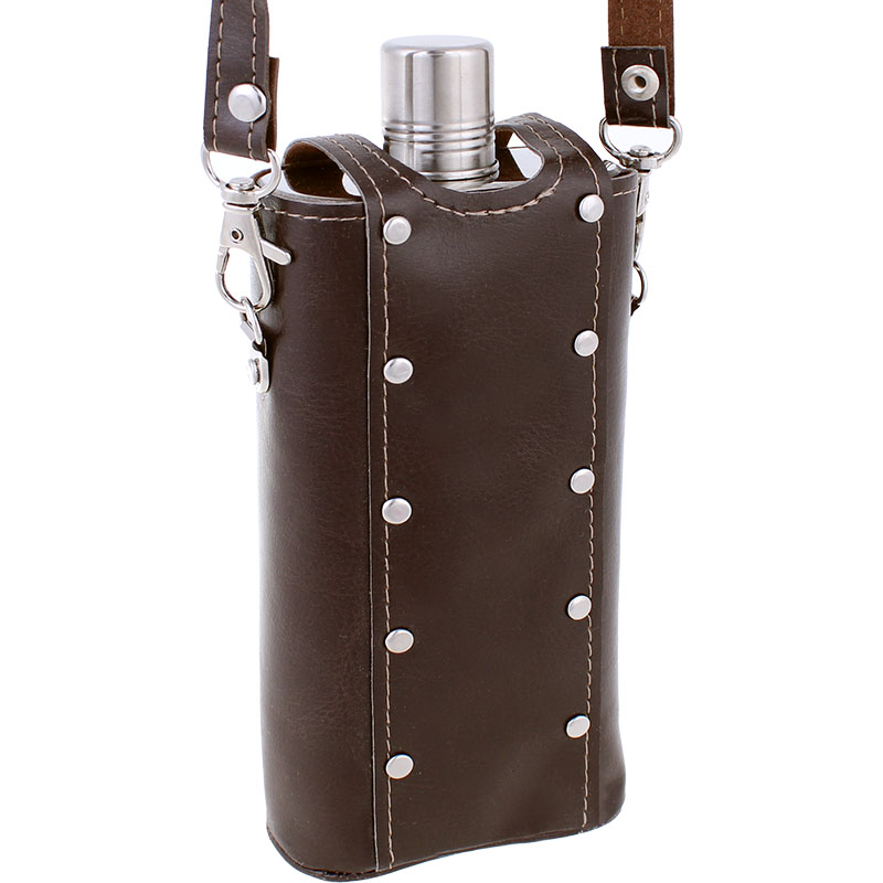 Husa elegantă din piele ecologică protejează plosca împotriva deteriorării și îi conferă un aspect modern. Datorită husei și curelei detașabile, transportul este confortabil și flexibil – poate fi purtată pe umăr sau depozitată cu ușurință într-o geantă ori rucsac.