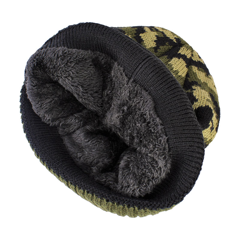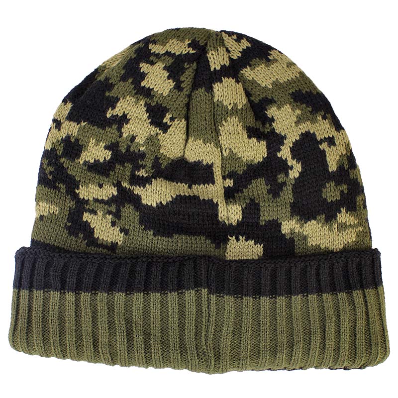 Căciulă clasică de iarnă tricotată cu model de camuflaj digital. Interiorul căciulii este bine izolat pentru a fi purtată pe vreme geroasă. Acrilicul este materialul ideal pentru confecționarea căciulilor călduroase, deoarece este cunoscut pentru capacitatea sa de a păstra căldura, senzația plăcută, precum și durabilitatea de lungă durată.