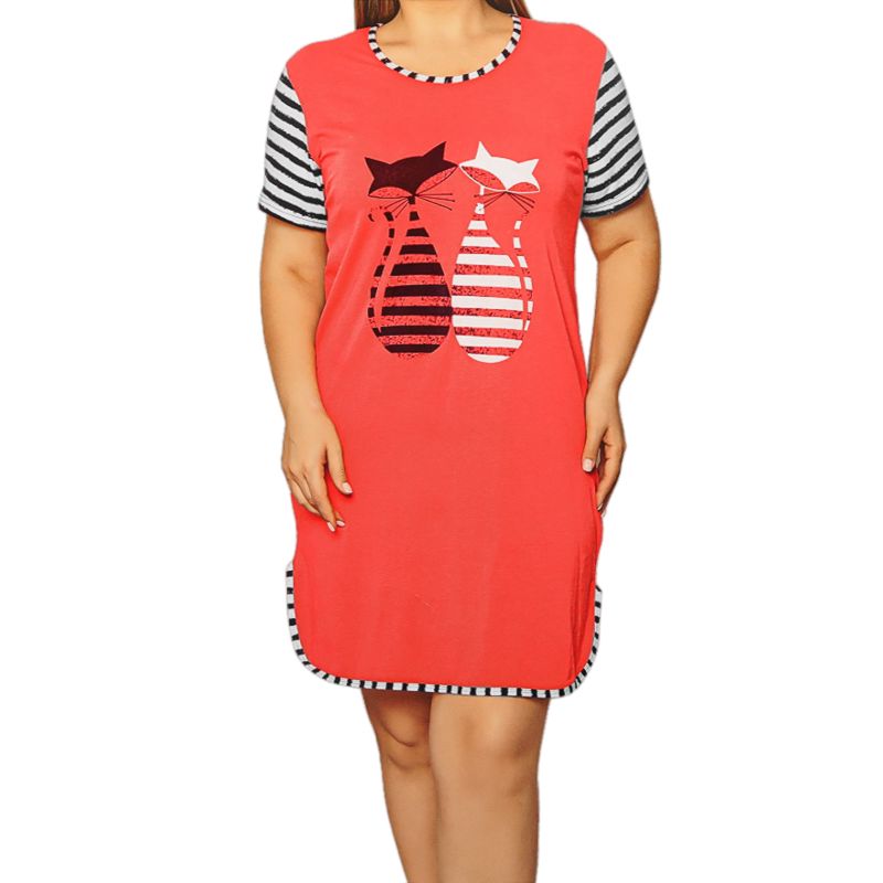 Cămașa de noapte pentru damă în roz a fost realizată din bumbac (95%) și elastan (5%) pentru un somn confortabil și profund. Suprafața cămășii este moale la atingere, dar și ideal elastică datorită elastanului, astfel încât se adaptează oricărei siluete. Cămașa este completată suplimentar cu un design drăguț de pisică în partea din față. Această cămașă de noapte oferă un confort ideal care nu trebuie ratat în timpul unui somn bun.