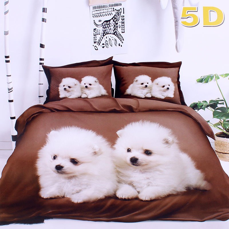 Lenjerie de pat set 7 piese 5D Corgi din bumbac Set de lenjerie pentru 1 saltea, 4 perne, 2 pilote