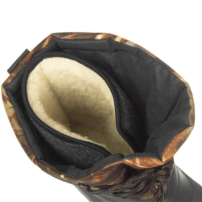 Cizmele de iarnă pentru bărbați Râs în finisaj camuflaj servesc drept încălțăminte de iarnă pentru bărbați ideală pentru condiții de teren foarte dificile. De durabilitatea cizmelor se ocupă cele mai ideale materiale, care asigură condiții adecvate pentru șederea în medii înzăpezite sau alte condiții nefavorabile. Talpa este alcătuită din cauciuc rezistent, cu profil gros, care nu eșuează nici atunci când traversați un teren noroios. Pentru a vă menține picioarele în condiții confortabile, în interiorul cizmelor a fost încorporată o căptușeală caldă detașabilă, cu proprietăți izolatoare ideale, potrivite pentru vremea rece sau climatul nordic al Pământului. Căptușeala este alcătuită dintr-o combinație de piele de oaie și lână sintetică, cu un strat exterior de pâslă întărită. Zona călcâiului a fost ușurată pentru a permite un mers mai confortabil. Așadar, dacă sunteți în căutarea unor ghete de iarnă fiabile, cu un aspect plăcut, fabricate din materiale de cea mai înaltă calitate, atunci nu mai căutați.