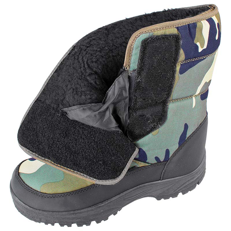 Cizmele de iarnă pentru damă în camuflaj 3D îndeplinesc rolul de ghete de iarnă ideale de damă pentru medii înzăpezite și reci. Talpa este alcătuită dintr-un profil de cauciuc suficient de gros și este adaptată pentru un mers confortabil în zăpadă. Interiorul ghetei conține un strat plăcut de pâslă cu proprietăți termoizolante de înaltă calitate. Închiderea cizmelor se face cu ajutorul unui velcro puternic.