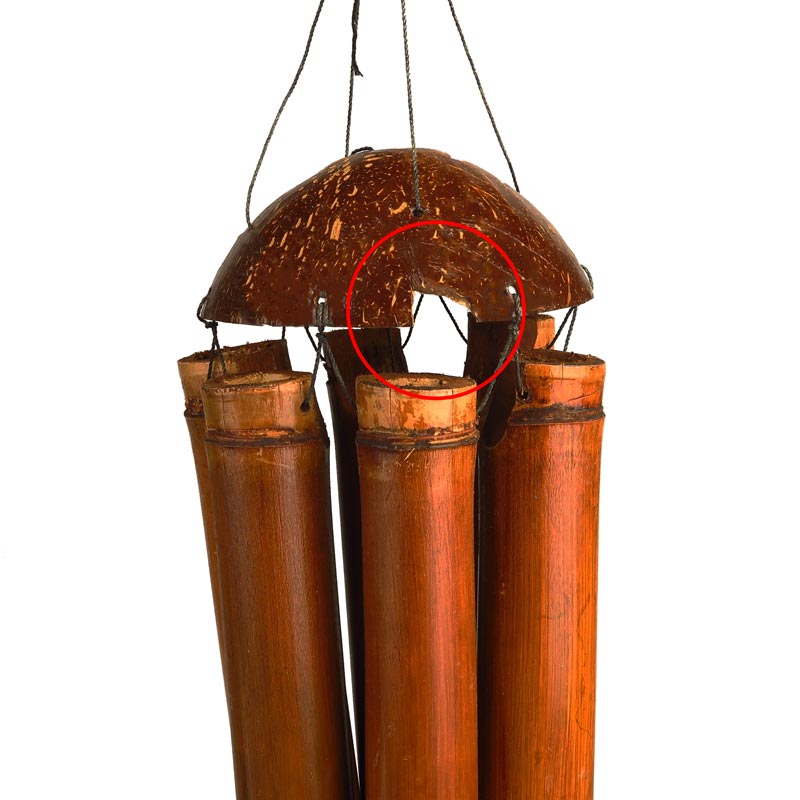 Descriere: Clopoțeii de vânt sunt fabricați manual dintr-o parte a cojii de nucă de cocos și șase tuburi de bambus de diferite lungimi, care sunt legate între ele cu ajutorul unei sfori. Clopoțeii includ și un cârlig metalic pentru agățare. Când bate vântul, clopoțeii scot sunete plăcute, iar tonurile lor au un efect calmant asupra noastră și ne aduc o senzație de confort și liniște. Clopoțeii de vânt din bambus sunt potriviți pentru terasă, balcon, grădină, dar și pentru cameră sau hol. Clopoțeii sunt folosiți mai ales în Asia, în templele călugărilor budiști.