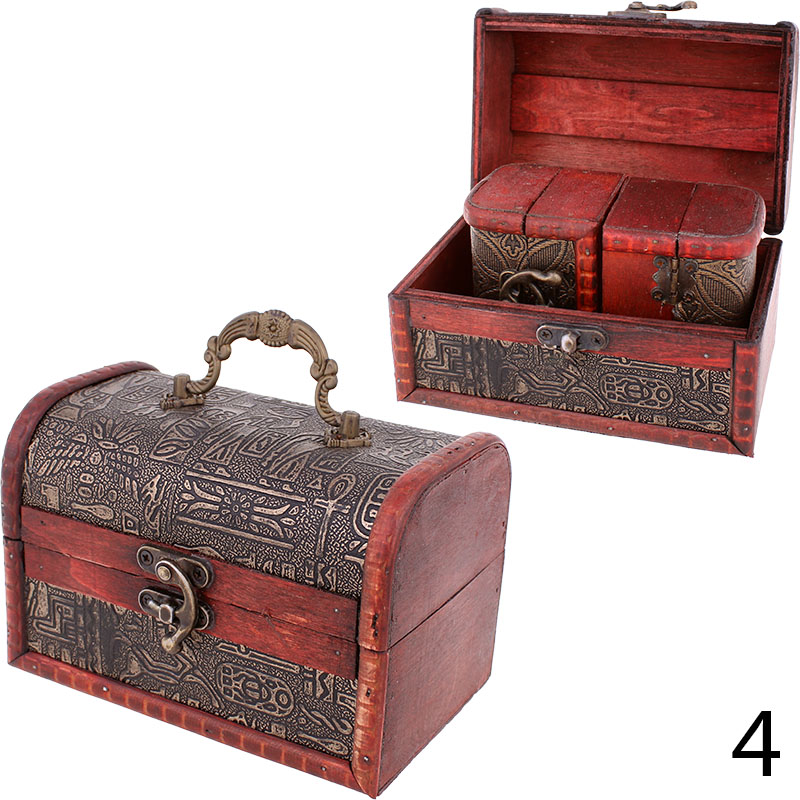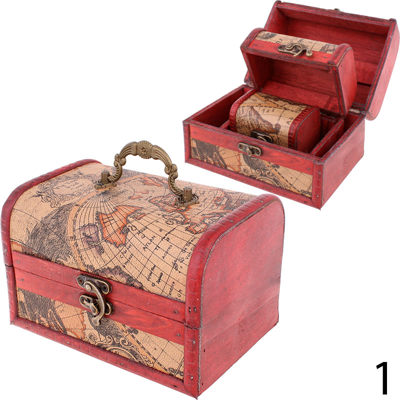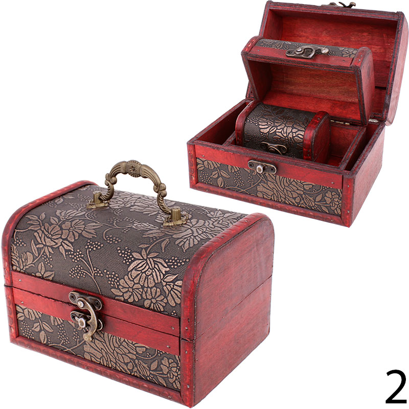 Set de cufere din lemn în stil retro pentru diferite tipuri de bijuterii, obiecte de valoare etc. Aceste cutii de bijuterii sunt realizate din lemn îmbrăcat în culori și modele vintage, astfel încât se potrivesc perfect cu alte decorațiuni retro sau vintage. În partea superioară a celei mai mari cutii se află un mâner care permite transportul mai ușor. Pachetul conține 3 cufere de dimensiuni diferite. Pe lângă utilizarea lor practică, aceste cutii pot fi și excelente decorațiuni vintage, care, cu puțină creativitate, se vor potrivi în orice încăpere.