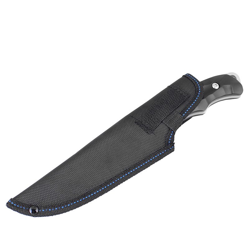 Cuțit de vânătoare potrivit pentru diverse activități în aer liber. Acest cuțit de vânătoare de calitate, cu lamă fixă, este realizat din oțel inoxidabil 420. Lama este prevăzută cu caneluri pentru degetul mare, care permit o manevrare mai precisă și mai sigură. Mânerul confortabil, realizat din metal, are o formă ergonomică pentru o prindere comodă și sigură. De asemenea, mânerul este dotat cu un orificiu pentru prinderea unei sfori. Pachetul include o teacă neagră din cordura, care poate fi fixată pe cureaua pantalonilor.
