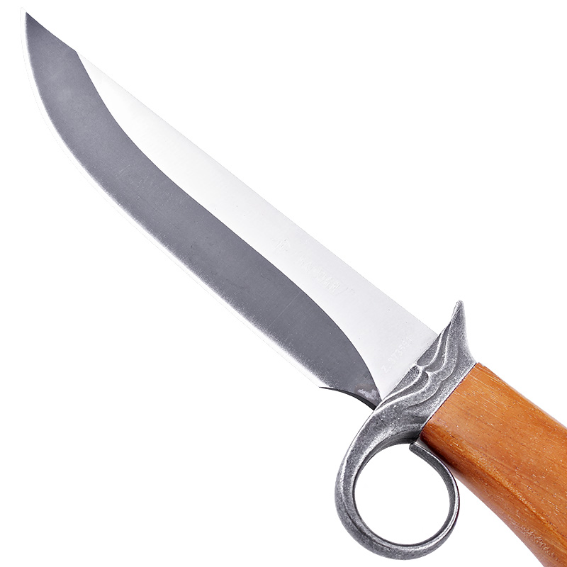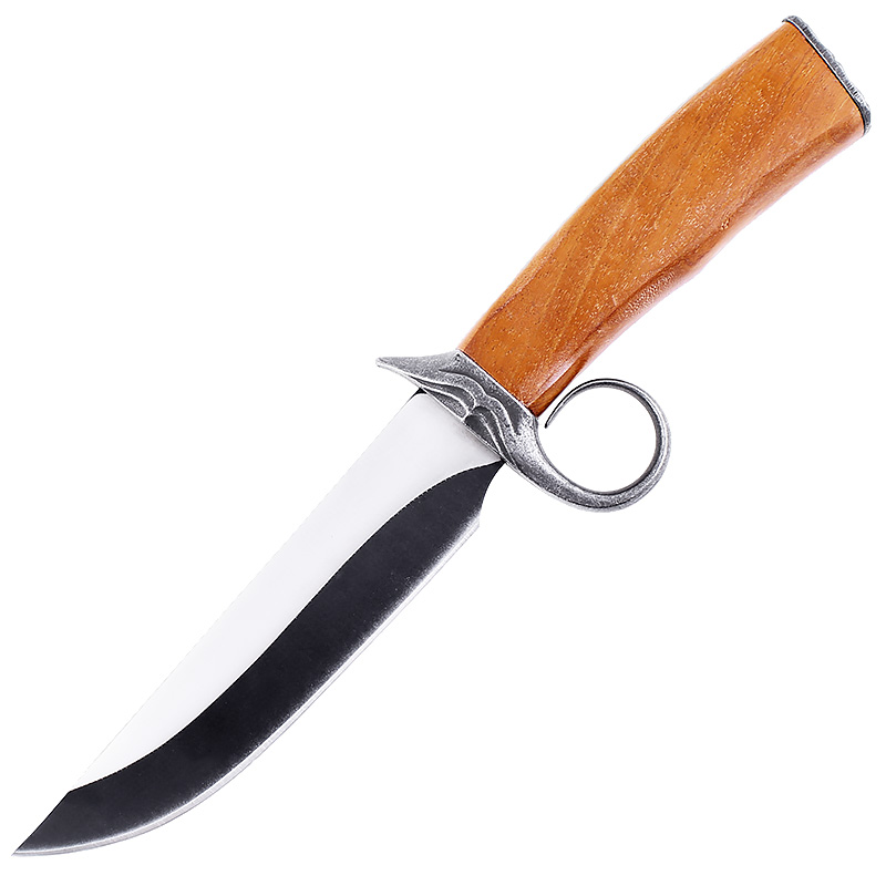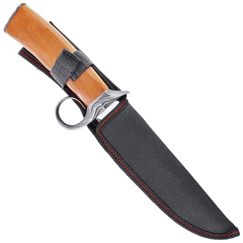 Un cuțit de vânătoare Kandar care este potrivit pentru orice activitate în aer liber. Acest cuțit de vânătoare clasic cu lamă fixă este fabricat din oțel inoxidabil 440 de înaltă calitate. Acest material este acoperit cu un strat protector negru pe partea lamei, care crește durabilitatea cuțitului și proprietățile anti-coroziune. Mânerul confortabil este realizat din lemn clasic. Cuțitul de vânătoare este echipat cu o protecție decorativă, care se potrivește perfect la deget și protejează mâna de alunecarea pe lamă. Pachetul include o teacă neagră din cordura care poate fi atașată la cureaua pantalonilor.