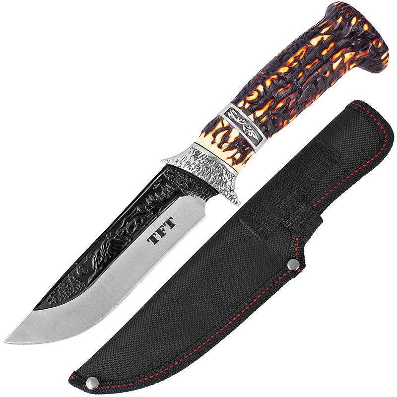 Cuțitul de vânătoare, Lup TFT, realizat cu precizie, este un cuțit de calitate pentru vânătoare cu teacă pentru orice situație. Designul elegant va atrage orice vânător, făcând din acest cuțit și un cadou potrivit pentru un bărbat. Cuțitul de vânătoare se potrivește perfect în mână, făcându-l practic și extrem de confortabil atunci când efectuați, cu el, diverse tipuri de lucrări. Lama este fabricată din oțel inoxidabil 420 de înaltă calitate. Cuțitul este echipat cu o protecție metalică, extinsă clasic, care protejează eficient mâna de alunecarea spre tăiș. Setul include o teacă neagră din cordura care poate fi prinsă la cureaua pantalonilor.