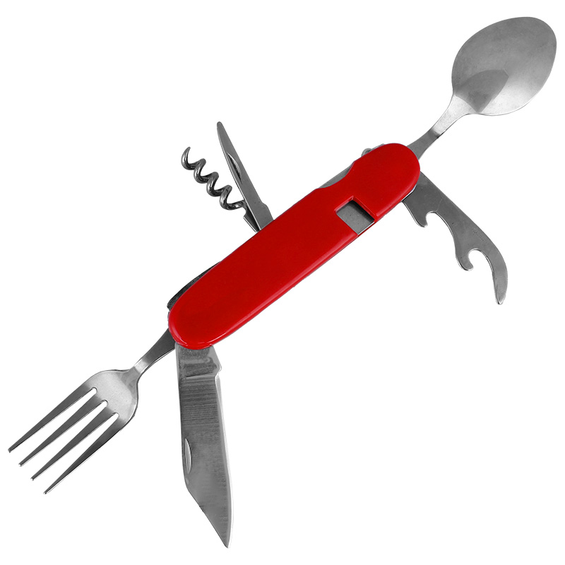 Stoc DA > 5 bucCuțit de buzunar pentru activități în aer liber, roșu greutate: 105 g număr de instrumente: 6 cuțitul conține: lingură, cuțit, furculiță, deschizător de sticle, tirbușon, inel din oțel inoxidabil pentru cheilungime în stare pliată: 11...