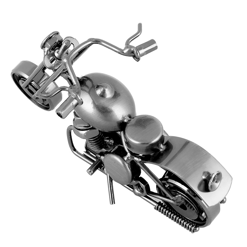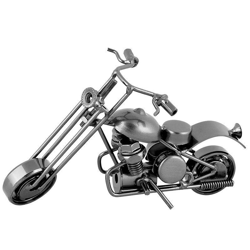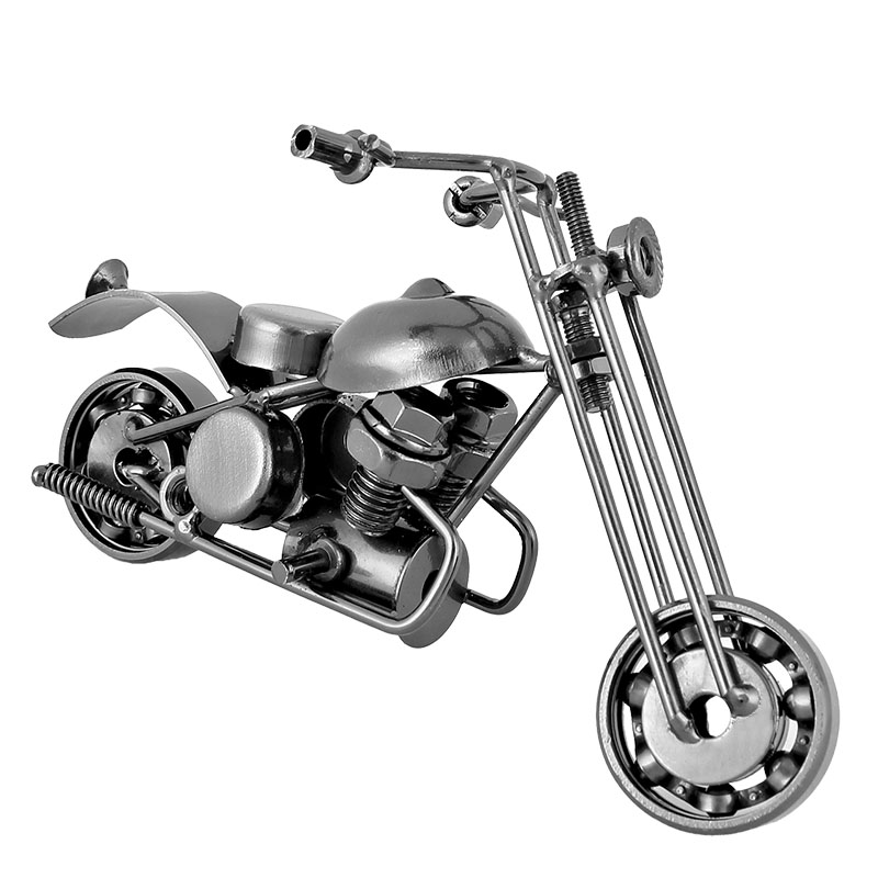 Descriere: Machetă metalică decorativă a unei motociclete de șosea, este realizată din diverse piese metalice precum piulițe, șuruburi, rulmenți, lanțuri, șaibe, etc., care sunt sudate cu mici bucăți de tablă. Macheta este potrivită ca obiect decorativ pentru apartament, camera copiilor, club, sau chiar pentru pub-uri sau moteluri. Poate fi o jucărie pentru copii sau, de asemenea, ca un cadou original și ieftin pentru motocicliști.