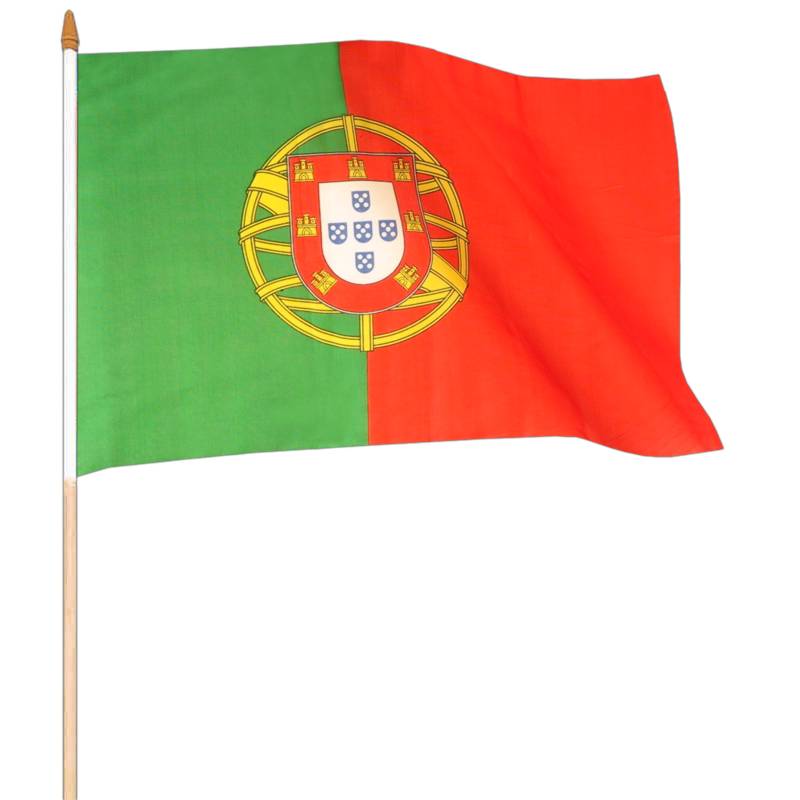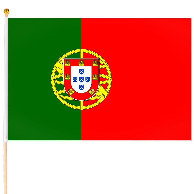 specificații: Drapelul Portugaliei are două dungi verticale, verde la catarg și roșu la pânză. La intersecția celor două dungi se află emblema națională. Roșul simbolizează sângele vărsat în timpul Revoluției portugheze din 1910, iar verdele simbolizează speranța.