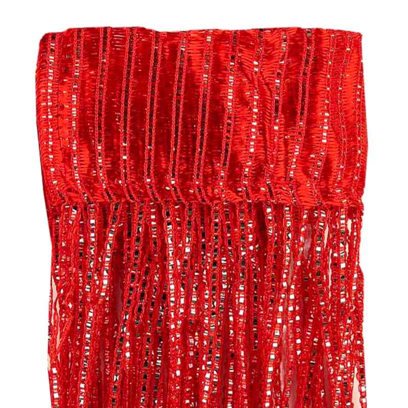specificație: draperia modernă cu șnur în roșu cu strălucire argintie metalică decorează nu numai ferestrele, dar poate servi și ca perdea pentru ușă. Draperia spaghete poate fi agățată pe o tijă printr-un tunel de șnur de 8 cm lățime sau cu clipsuri. Se poate spăla la o temperatură de până la 30°C.