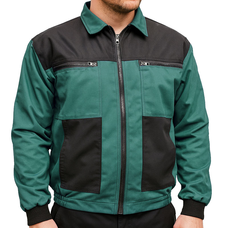specificație: geacă de lucru practică, închidere cu fermoar cu două buzunare mari în față și două buzunare la piept negre cu închidere cu fermoar, elastic în talie, șnur elastic pe mâneci, geacă cu șale negre în față și în spate. Geacă de lucru NIKA este potrivită pentru atelier, grădină și diverse lucrări în construcții, inginerie, agricultură, depozit, service auto, în medii poluate, etc.