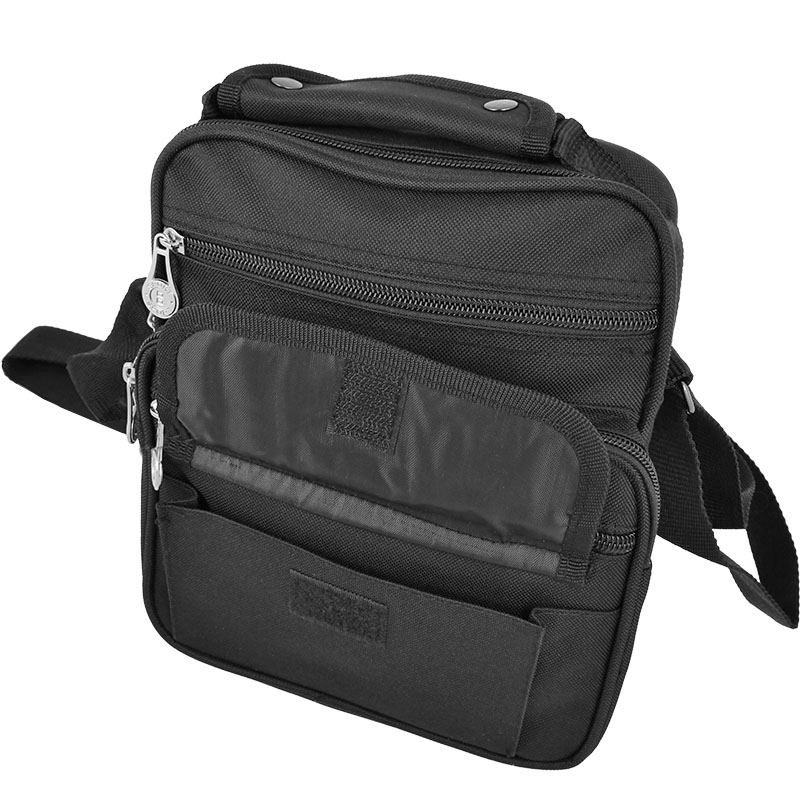 Geantă practică de umăr pentru documente, obiecte personale sau gustări. Geanta dispune de un total de șase compartimente, dintre care cinci se închid cu fermoar și unul cu bandă velcro. În cel mai mare compartiment încape o gustare sub formă de mâncare sau chiar o sticlă din plastic de 500 ml. Compartimentele diferă ca dimensiune, permițând o organizare eficientă a obiectelor personale. Cel mai mic compartiment are dimensiunile de 15 x 10 cm. Curea de umăr este reglabilă. Este o geantă ideală de purtat pe umăr, potrivită pentru orice situație.