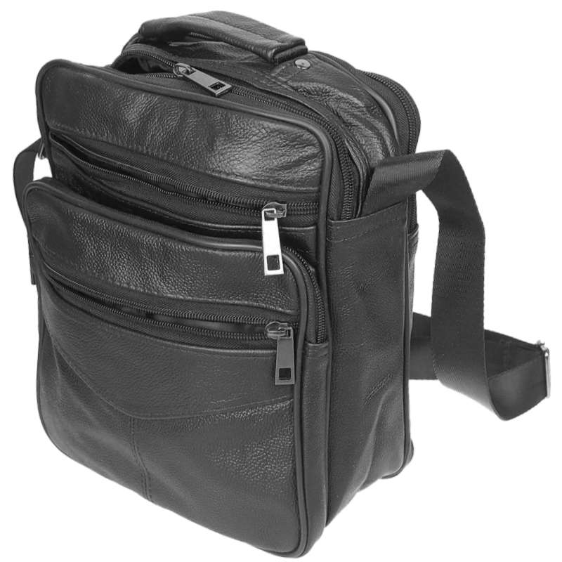 Geantă peste umăr pentru bărbați de culoare neagră este un accesoriu excelent pentru toți cei care au nevoie de o geantă de umăr elegantă, dar și practică. Geanta a fost confecționată din piele naturală, astfel încât oferă rezistență îndelungată, dar și un design elegant. Dimensiunile de 27 x 28 x 8 cm sunt utilizate pe deplin pentru a vă purta portofelul, telefonul mobil, documente sau chiar gustări mai mici. Breteaua confortabilă poate fi reglată de la o lungime de 75 cm până la 140 cm, oferind posibilitatea de a o adapta după propriile preferințe. În plus față de curea, geanta este echipată și cu un mâner. Numărul total de buzunare al acestei genți din piele este de cinci. Fiecare buzunar a fost realizat la dimensiuni diferite, astfel încât aveți posibilitatea de a sorta obiectele mai mici de cele mai mari.