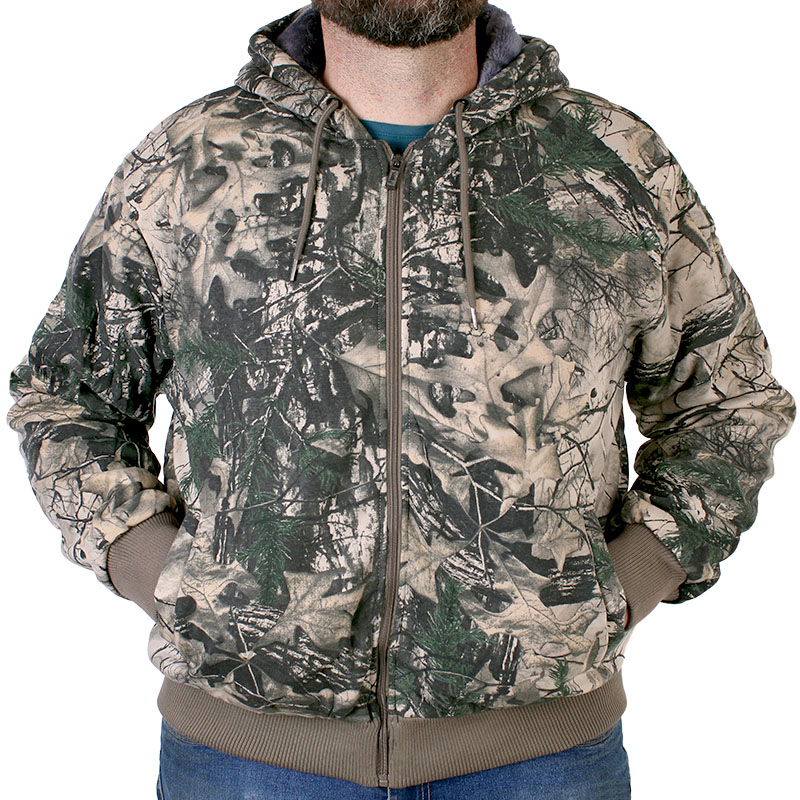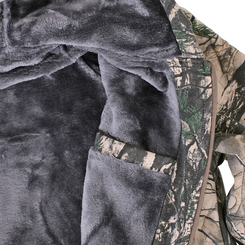 Hanoracul camuflaj Loshan pentru bărbați, cu model forestier, este un hanorac de calitate, căptușit, cu blăniță fină de culoare gri, care se regăsește și pe glugă. Gluga este reglabilă cu șnur, iar închiderea hanoracului este clasică, cu fermoar. Două buzunare frontale mari cu închidere cu fermoar, iar în interiorul hanoracului se află un buzunar suplimentar. În talie și la mâneci, hanoracul este finisat cu manșete elastice late din tricot. Acest hanorac bărbătesc este ideal ca hanorac de iarnă sau pentru sezonul de tranziție.