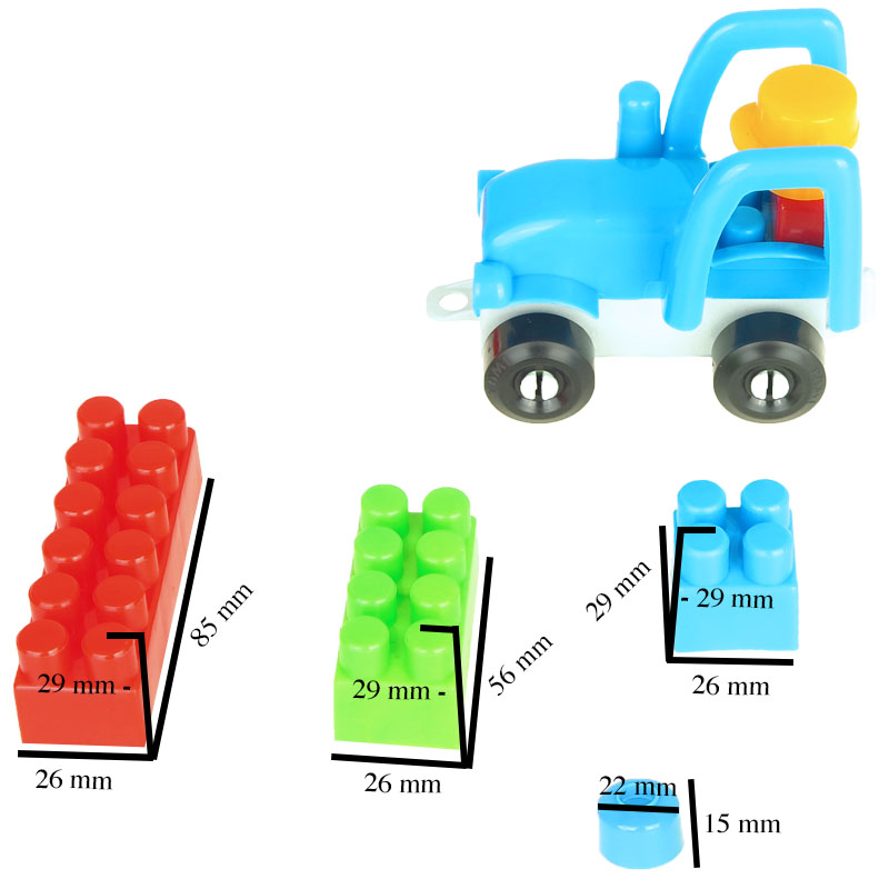 Descriere: Acest set de construcție din plastic colorat pentru copii este format din 400 de piese și accesorii de diferite culori, care pot fi folosite pentru a construi case, poduri, coșuri de fum, vehicule, machete și diverse clădiri și alte ansambluri în funcție de propria imaginație. Dimensiunea cuburilor este mai mare și, prin urmare, potrivită pentru prinderea unei mâini de copil mic. Setul de construcție pentru copii ajută la dezvoltarea imaginației, a abilităților creative și de combinare. Este conceput pentru băieței și fetițe de la vârsta de trei ani.