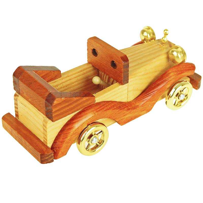 Modelul din lemn al unei mașini este o decorațiune excelentă din lemn pentru apartament. Acest cabriolet a fost realizat din lemn și plastic și poate servi drept cadou pentru un bărbat, o femeie sau un copil. Dimensiunile totale ale mașinii sunt: lungime 15 cm, lățime 6 cm, înălțime 5 cm.