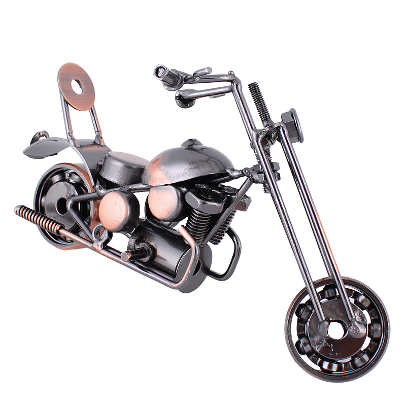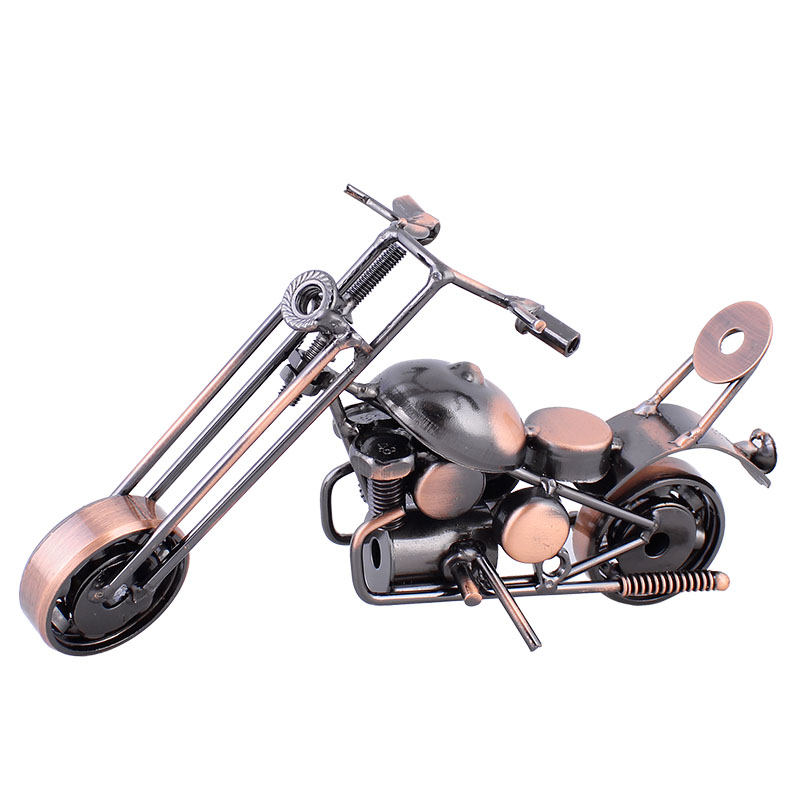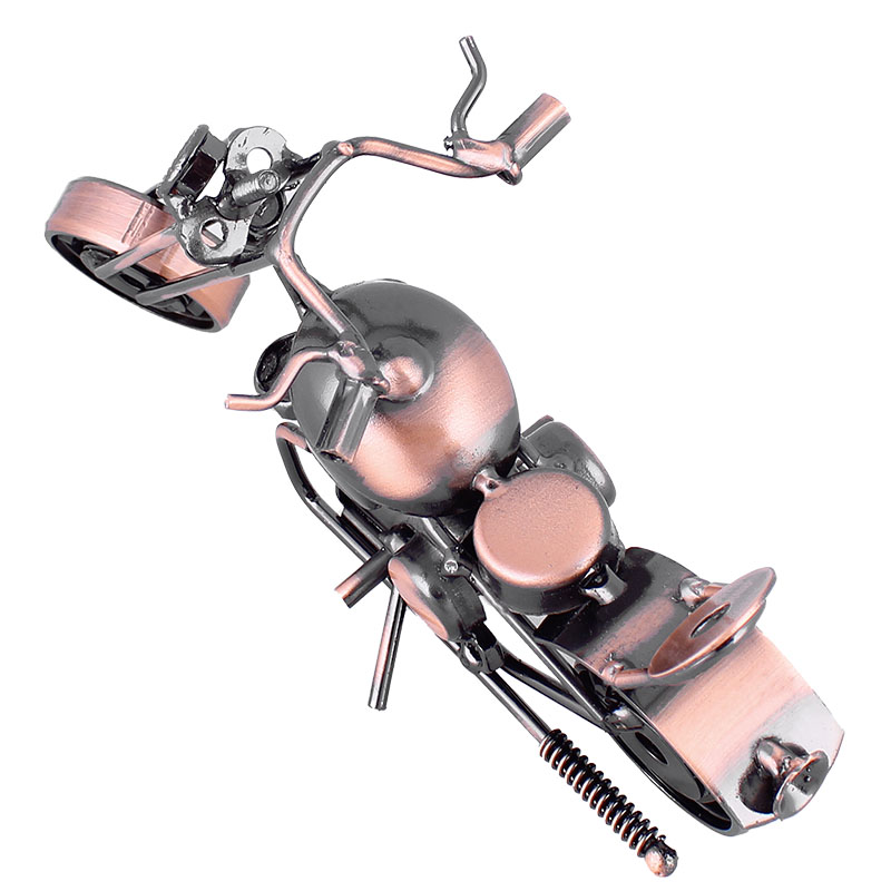 Descriere: Machetă metalică decorativă a unei motociclete de șosea, este realizată din diverse piese metalice precum piulițe, șuruburi, rulmenți, lanțuri, șaibe, etc., care sunt sudate cu mici bucăți de tablă. Macheta este potrivită ca obiect decorativ pentru apartament, camera copiilor, club, sau chiar pentru pub-uri sau moteluri. Poate fi o jucărie pentru copii sau, de asemenea, ca un cadou original și ieftin pentru motocicliști.