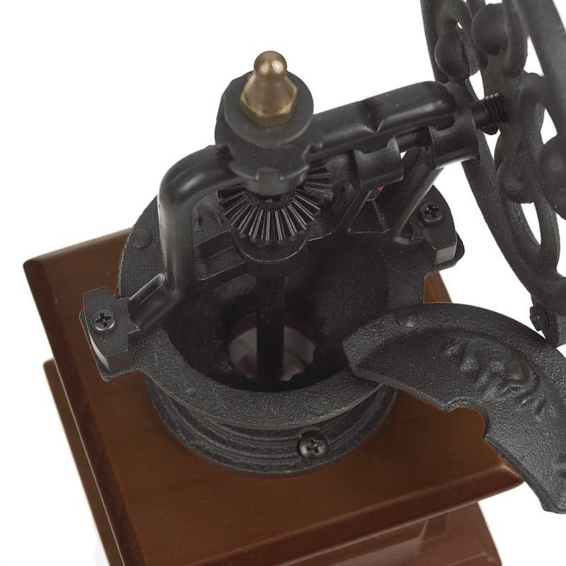 Materialele de epocă folosite în trecut pentru fabricație sunt prezente și pe această râșniță manuală, oferindu-vă o senzație autentică atunci când vă măcinați zilnic cafeaua proaspătă cu această râșniță retro. Este combinația perfectă de design elegant și utilizare practică. Sistemul mecanic aparent complex sub formă de angrenaje își face întotdeauna treaba, deoarece are nevoie doar de forța necesară pentru a se roti cu mânerul. La urma urmei, este plăcut să folosești din când în când unelte manuale și, ceea ce este și mai bine, cafeaua măcinată manual are întotdeauna un gust mai bun.