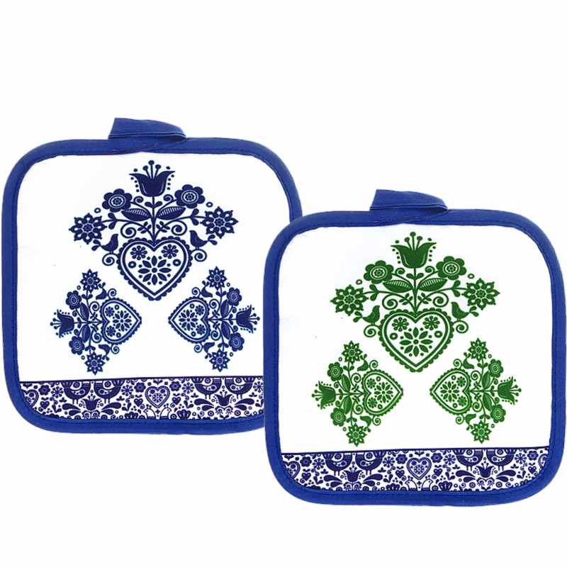 Mănușă de bucătărie realizată din material rezistent din poliester, cu interior din fibre de poliester. Include un suport termic de 18 × 18 cm, decorat cu modele atrăgătoare. Este o alegere practică și estetică pentru protecția mâinilor în timpul gătitului, oferind totodată un plus de stil bucătăriei.