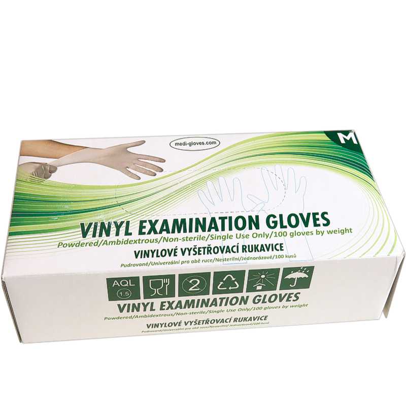 ATENTIONARE: Utilizatorul trebuie să țină cont de circumstanțele de utilizare atunci când decide dacă să îndepărteze praful rămas din mănuși după ce le-a îmbrăcat. Pudra poate fi îndepărtată prin ștergere temeinică cu un burete umed steril, o cârpă umedă sterilă sau o altă metodă eficientă. Verificați eventualele deteriorări înainte de utilizare, nu folosiți mănuși deteriorate! Mănușile de vinil nu sunt destinate utilizării ca barieră chimică. Nu folosiți mănuși pentru a vă proteja împotriva substanțelor chimice periculoase.