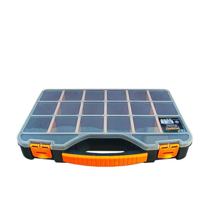 specificație: organizator portabil din plastic pentru lucruri mici, cum ar fi șuruburi, piulițe, cârlige de pescuit și momeli, etc. Dimensiunea compartimentelor poate fi modificată prin îndepărtarea separatorului portocaliu, ajutor practic în atelier și locuință.