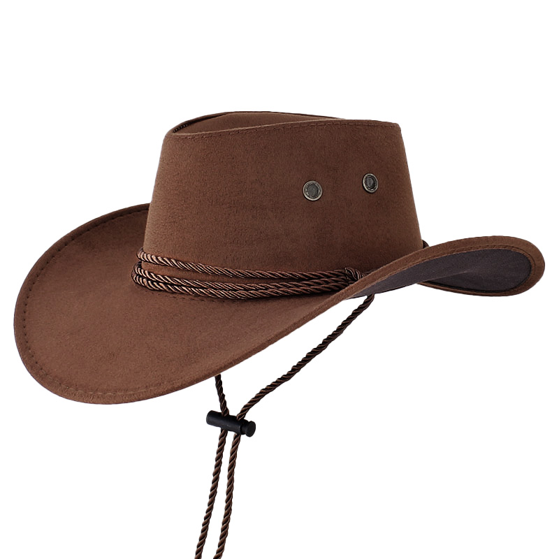Pălăria pentru bărbați sau damă, din piele întoarsă maro, este decorată cu un șnur subțire. Pălăria este prevăzută cu un cordon de prindere și fermoar sub bărbie. 4 găuri de ventilație în mijlocul pălăriei garantează o ventilație perfectă, în special în lunile de vară. Pălăria este potrivită pentru plimbări în natură, drumeție, grădinărit sau chiar pentru ținute casual. Ideală vara în zilele însorite, potrivită ca o protecție a capului împotriva soarelui arzător.