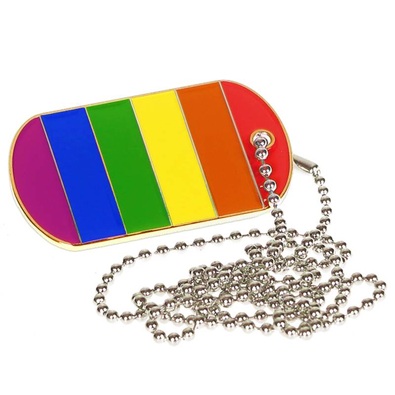 Pandantiv cu model LGBT care măsoară 50 x 30 mm (H x L). Lungime lanțului este de 60 cm +/- 2 cm. Pandantivul este confecționat integral din metal - există un aranjament de culori care urmează modelul steagului LGBT pe față, cu un finisaj argintiu, lucios, pe verso. Pandantivul este potrivit pentru toate evenimentele LGBT.