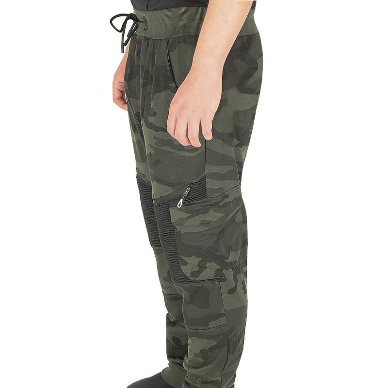 Descriere: Pantaloni de trening de camuflaj pentru bărbați cu croială și culoare interesantă, confecționați din tricot subțire, cu două buzunare frontale și un buzunar mic la spate. Pantalonii moderni și eleganți de trening pentru bărbați impresionează prin cusăturile negre fanteziste deasupra genunchilor și prin cele două buzunare laterale. Talia elastică din tricot cu elastic larg în interior poate fi reglată cu ajutorul cordonului. Partea inferioară a pantalonilor de trening este finisată cu părți largi tricotate cu cordon de tragere. Pantalonii de trening de camuflaj pentru bărbați TA628 woodland din tricot subțire plăcut sunt ideali pentru a fi purtați în timpul liber acasă, la țară, la cabană etc. Acest material poate fi spălat la temperaturi scăzute de până la 40°C.