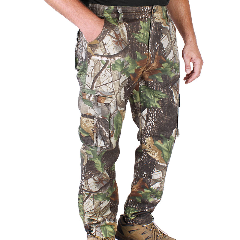 specificația pantalonilor: foarte populari, pantalonii de camuflaj pentru bărbați în model realtree, care imită pădurea sau împrejurimile acesteia. Datorită acestui camuflaj, pantalonii se integrează foarte bine în natură, devenind astfel din ce în ce mai populari în rândul vânătorilor și pescarilor. De asemenea, și-au găsit popularitatea și în rândul fotografilor care doresc să surprindă cele mai bune imagini ale naturii și ale vieții sălbatice fără a perturba armonia pădurii sau a speria animalele. Acest lucru se datorează faptului că modelul arată la fel pentru animalele sălbatice ca și lumea exterioară și, prin urmare, acestea nu percep niciun pericol.