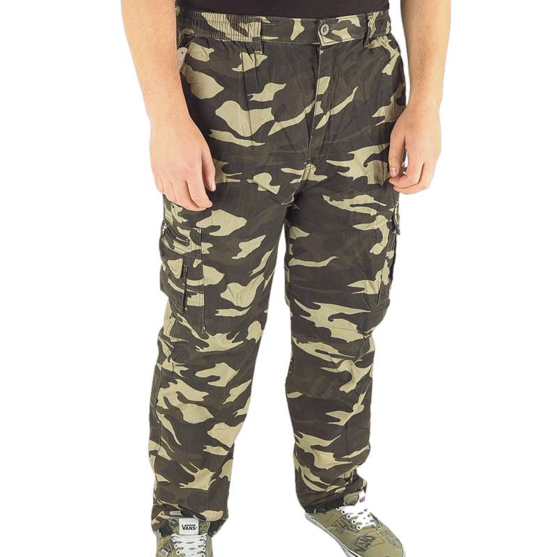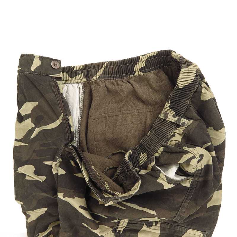 Descriere: Pantaloni de camuflaj izolați pentru bărbați, confecționați din materiale de înaltă calitate. Sunt foarte confortabili și plăcuți la purtare pe tot parcursul zilei. Talia pantalonilor se închide cu un fermoar și un nasture, au o talie elastică care poate fi strânsă cu șnururi, de asemenea, au găici pentru curea. Două buzunare în față. Pe piciorul stâng este un buzunar lateral cu arici, iar pe piciorul drept este un buzunar lateral cu arici și un buzunar mic.
