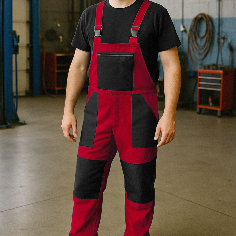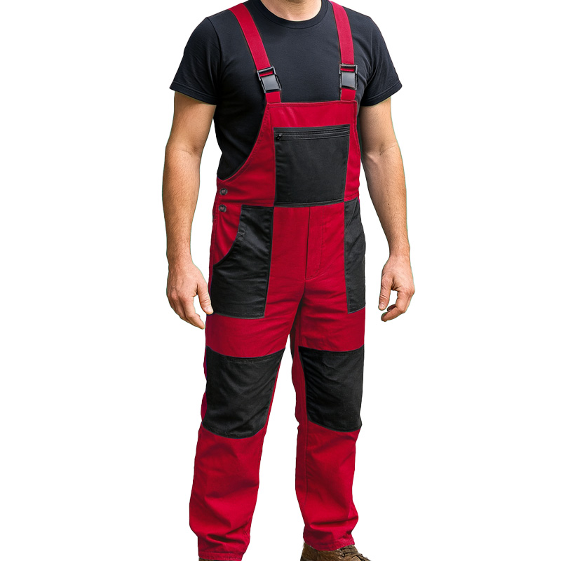 specificație: Pantalonii pentru bărbați, din bumbac, de lucru, cu bretele, buzunare și pe piept, cu întărituri pe genunchi, închidere laterală cu nasturi, un buzunar lateral, două buzunare în față, un buzunar pe piept cu fermoar, un buzunar pe spate și genunchi întăriți sunt negri, elastic în talie la spate, reglarea lungimii cu bretele. Pantalonii de lucru cu bretele NIKA roșu sunt potriviți pentru atelier, grădină și diverse munci în construcții, inginerie, agricultură, depozit, service auto, în medii murdare și etc.