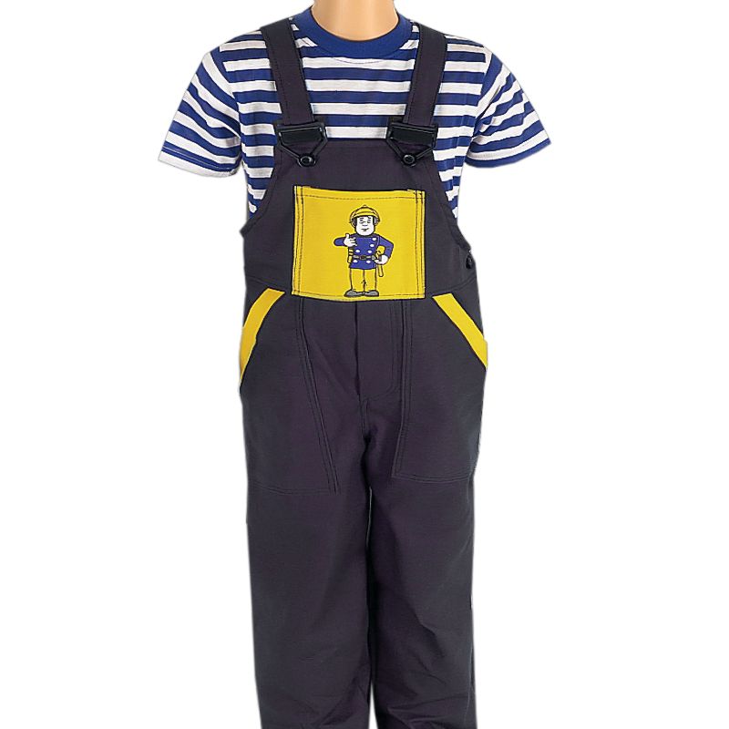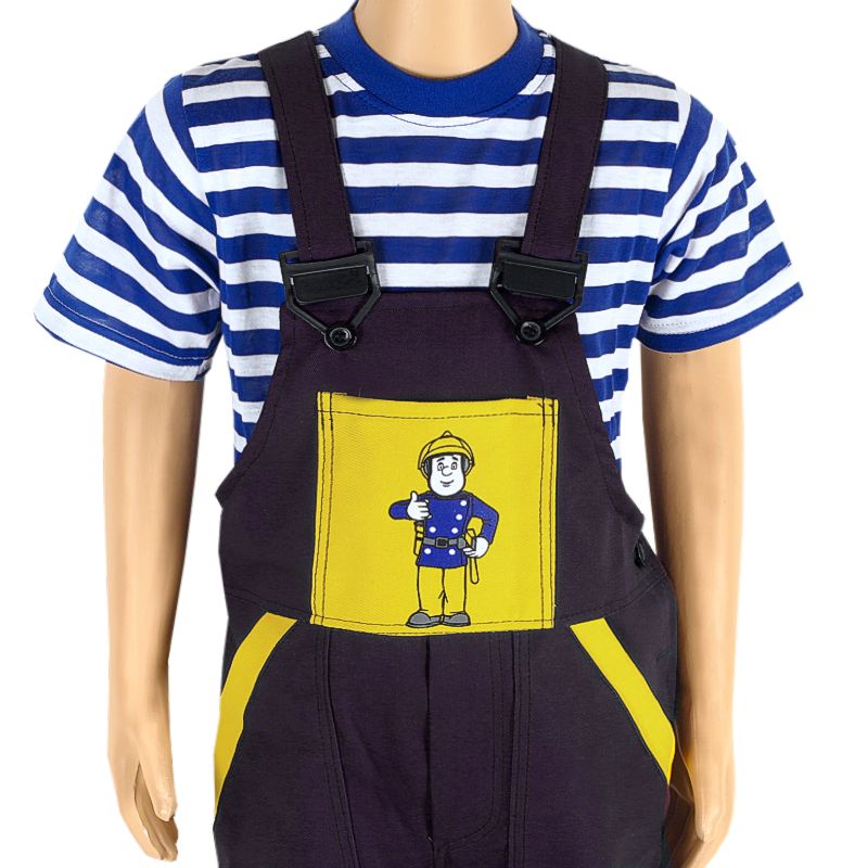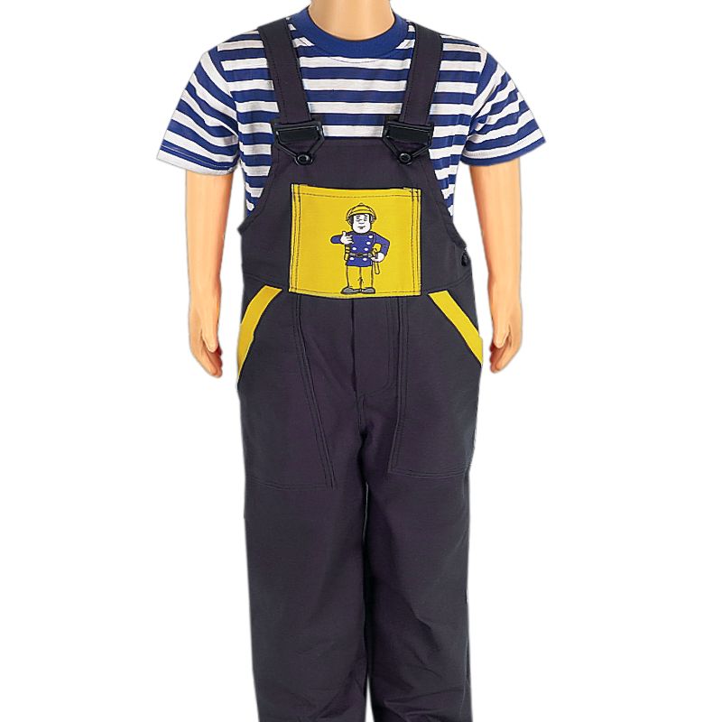 Descriere: Pantaloni populari de lucru pentru copii, cu bretele în față și o imagine a micului pompier din povești cu aventurile lui "Pompierul Sam". Pantalonii de pompier sunt potriviți pentru micii pompieri. Două buzunare în față, un buzunar la piept și un buzunar pe spate. Buzunarele sunt evidențiate cu o bandă neagră. În partea din spate a curelei există un șnur elastic. Bretelele sunt reglabile.