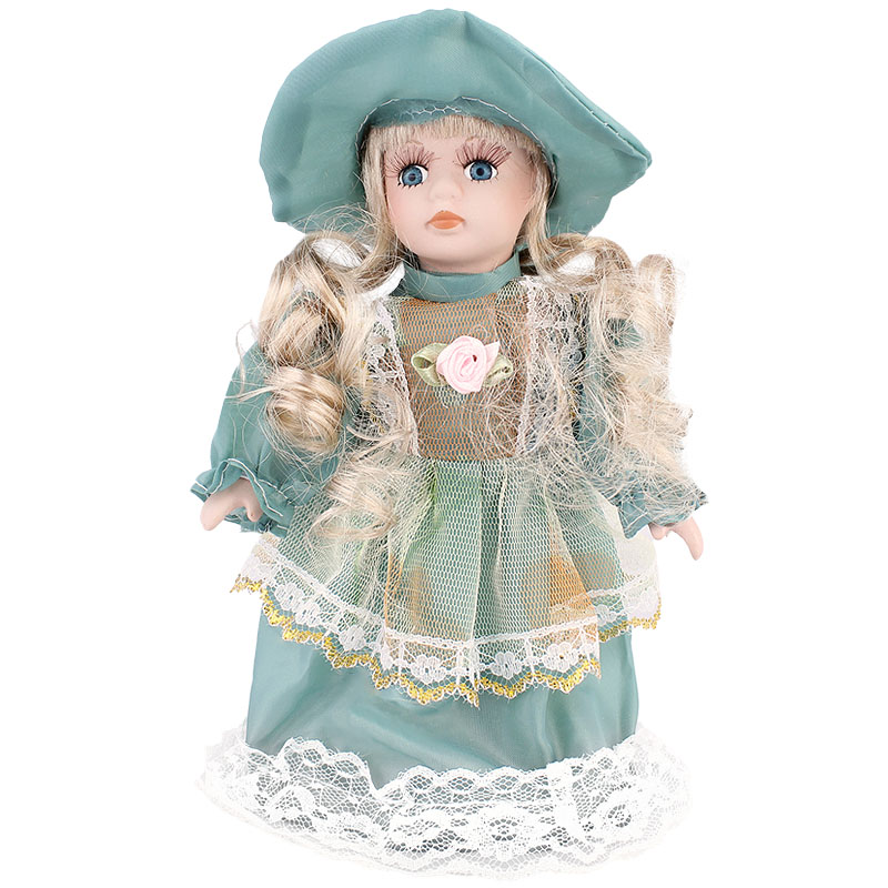 Introducere » Cadouri » Cadouri pentru copii » Păpuși » Păpușă din porțelan în haine verzi, 21 cm