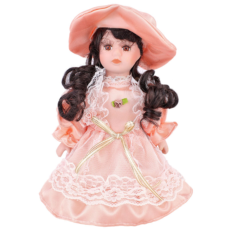 Păpușă de porțelan în rochie roz, 21 cm Păpușă de porțelan