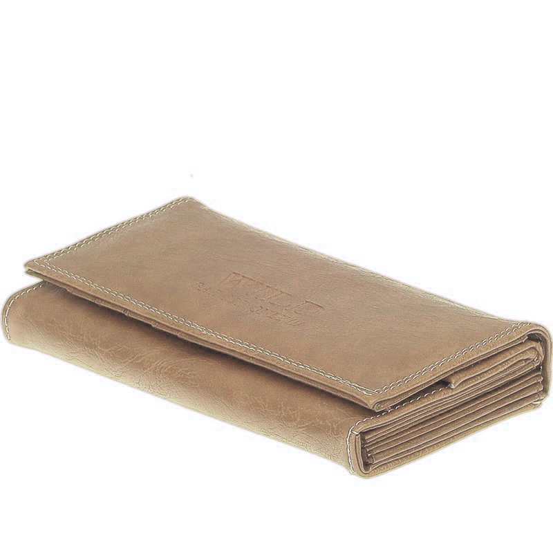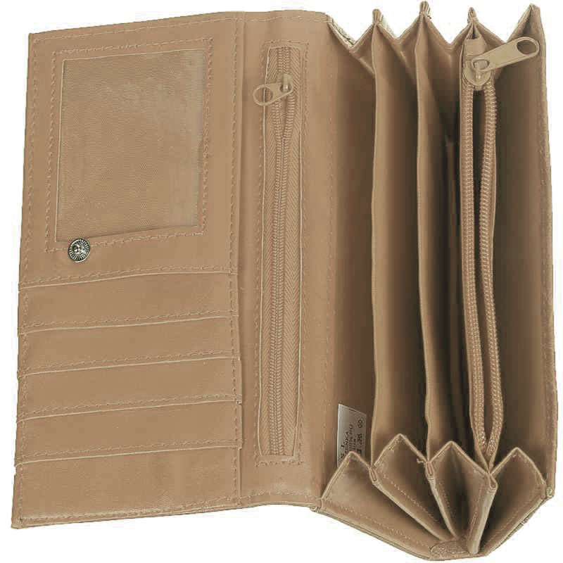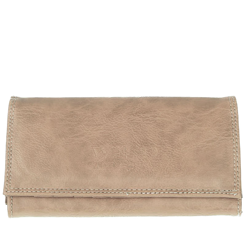 Portofel clasic maro sau bej subtil într-un design clasic, potrivit pentru femei.