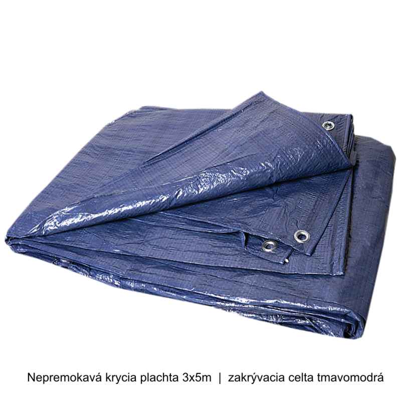 specificații: prelată albastră închis din material impermeabil are margini călcate și întărite în jurul perimetrului