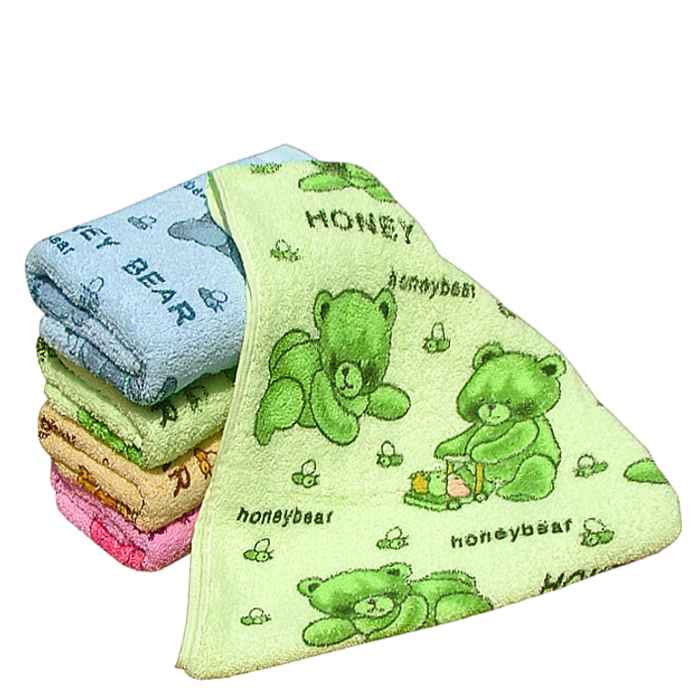 specificație: prosop plăcut din frotir în patru culori, cu motiv de ursuleți, se poate spăla la până la 40°C
