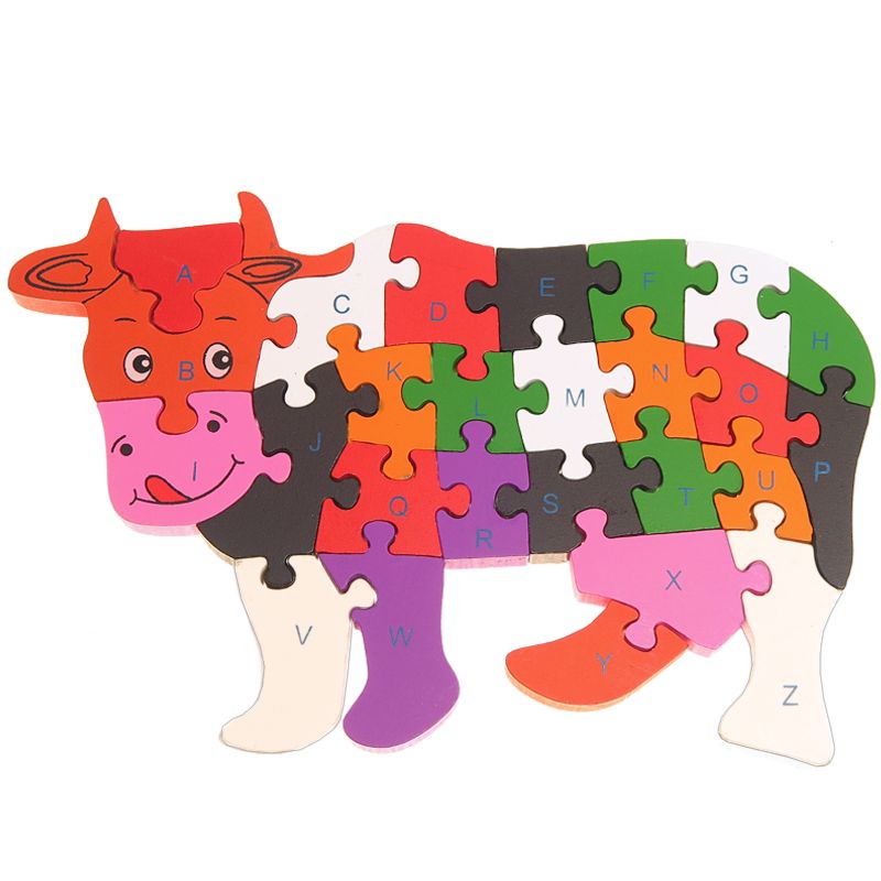 Puzzle colorat pentru copii care dezvoltă multe simțuri importante la copii. În plus față de asamblare, copiii ajung să cunoască culorile, numerele, precum și literele. Piesele sunt etichetate pe o parte cu numerele de la 1 la 26 și pe cealaltă parte cu literele majuscule ale alfabetului.