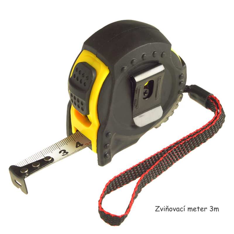 specificație: ruletă practică cu bandă de oțel de 3m lungime, 15mm lățime și frână situată în partea din față a carcasei, revenire automată a benzii după apăsarea butonului de eliberare de pe partea inferioară a carcasei