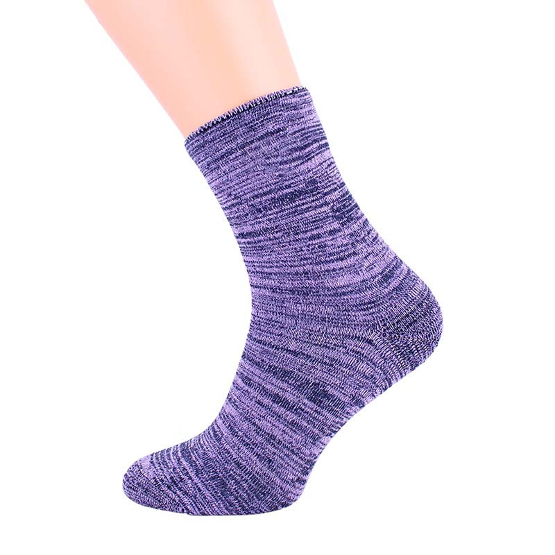 Aceste șosete din frotir pentru damă sunt simpatice și potrivite pentru lunile de iarnă sau de tranziție, menținând picioarele calde și uscate chiar și în condiții de temperatură scăzută. Compoziția materialului constă în 85% bumbac, 10% poliester și 5% elastan pentru o flexibilitate sporită a materialului. Aceste șosete de frotir sunt apreciate în special de femeile cu picioare dureroase, deoarece tivurile șosetelor nu strâng piciorul, în timp ce mențin șosetele în sine pe loc și nu alunecă de pe picioare.